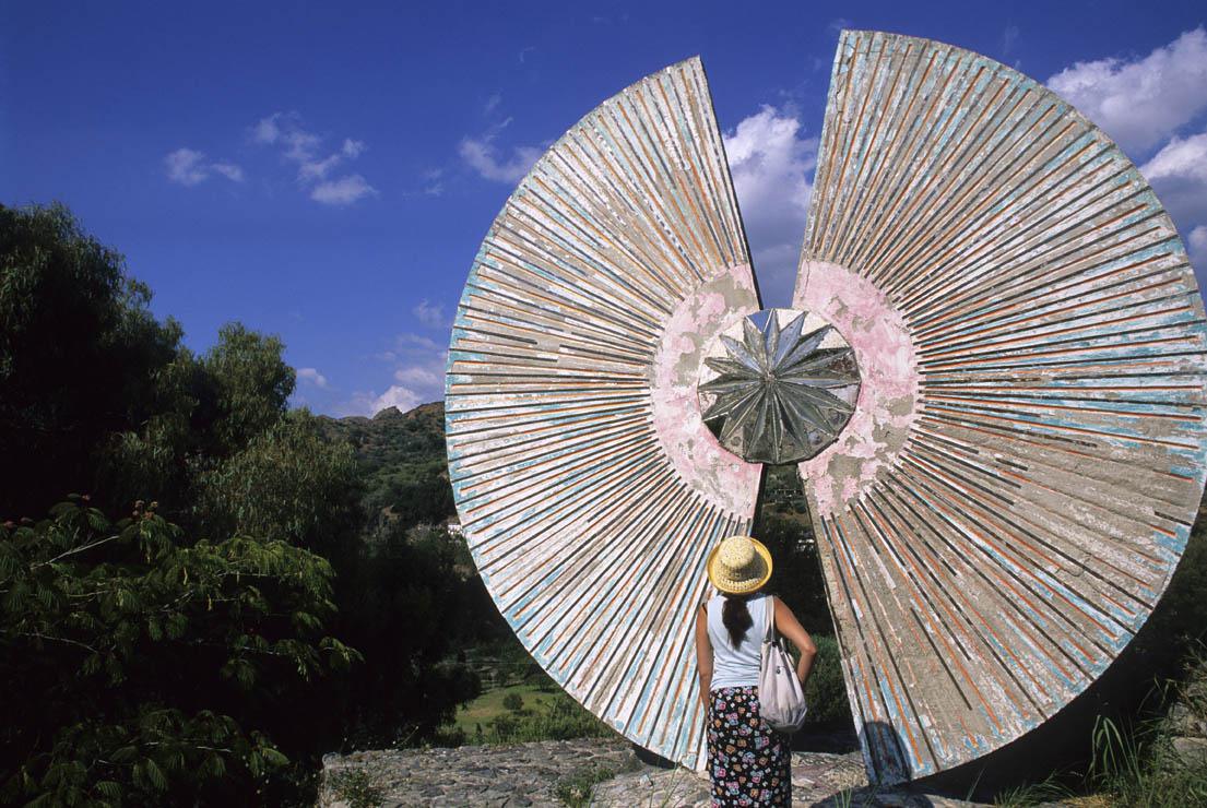 Chi percorre la superstrada Rosarno-Gioiosa Jonica, all’altezza di Mammola, è colto da strane apparizioni: oniriche sculture, piloni del viadotto dipinti, l’omino di ferro alto 15 metri contro il cielo. “Si chiama l’Ombra della Sera”, dice l’olandese Hiske Maas.“L’ha realizzato Nik, ispirato da un bronzetto etrusco”. Nik è Nicodemo Spatari, il compianto artista muto, classe ’29, pittore, scultore, architetto, anima e cuore insieme alla compagna Hiske del MUSABA, parco d’arte contemporanea a cielo aperto creato intorno al millenario monastero di Santa Barbara. Quando la coppia arrivò qui, nel ’72, i ruderi spuntavano tra la vegetazione. Oggi si cammina tra arte e bellezza. Il MUSABA è un laboratorio di idee. Chiunque può proporre la propria visione del mondo. Le opere disseminate nella natura sono state realizzate negli anni da variegati artisti, utilizzando solo materiali naturali prelevati sul territorio. Nicodemo dagli occhi cerulei e profondi non c’è più. Si è volatilizzato insieme ai suoi colori nel 2020. Da piccolo dipingeva i muri distrutti dalle bombe. Amico di Le Corbusier, era molto apprezzato da Jean Cocteau. Durante una mostra parigina di Nik, l’artista francese prelevò un suo quadro lasciando nel buco vuoto un biglietto. “Non ho resistito alla bellezza, mi perdoni”. Ce ne sono molti di suoi lavori al MUSABA. Tra questi il grande mosaico sulla storia delle arti mediterranee, dalla preistoria a Picasso. Il suo testamento spirituale però è la Storia di Giacobbe sulla volta della chiesa. Intagliate centinaia di sagome di legno, Nik le ha dipinte e poi incollate. L’effetto ottico è un fluttuare tridimensionale di colori. È la Cappella Sistina del maestro. Il MUSABA dovrebbe essere il primo luogo da visitare in Calabria. E molti nemmeno lo conoscono.
