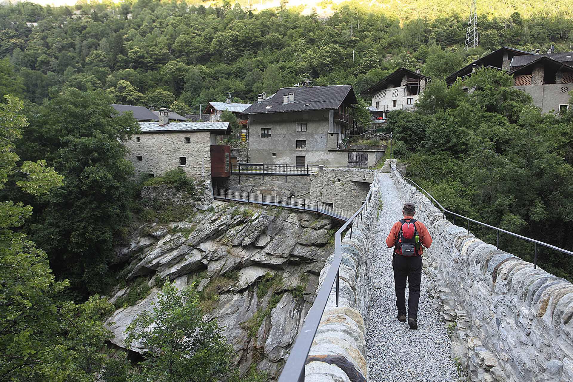 A picco sul torrente Grand Eyvia, il ponte-acquedotto del 3 a.C. rappresenta una delle opere di ingegneria idraulica più audaci e meglio conservate dell'arco alpino.