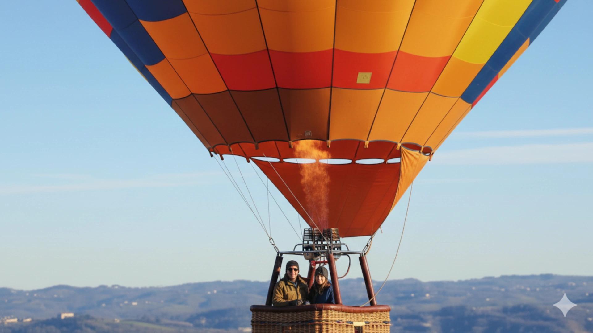 Sulle colline del monregalese, ai primi bagliori dell’alba, il silenzio è interrotto dal sibilo dei bruciatori che dirigono le fiamme verso l’interno degli involucri. Il tessuto di nylon inizia a gonfiarsi e le enormi sacche colorate prendono forma staccandosi dal suolo. I cesti di vimini sostengono il peso dei piloti e delle bombole di gas, mentre il pubblico osserva il decollo di questi aeromobili. A Mondovì il cielo diventa una mappa di correnti che i navigatori interpretano per dirigere il volo.